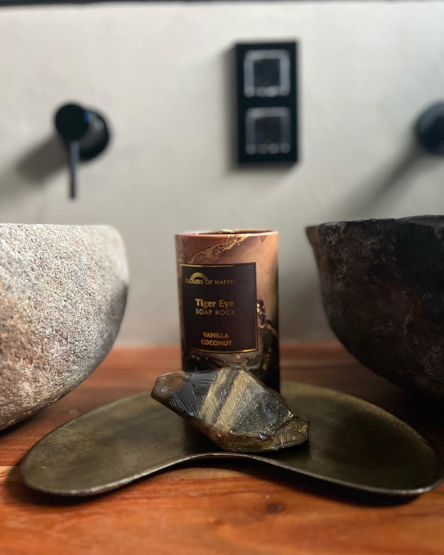 Geïnspireerd door de halfedelsteen tijgeroog met een geur van kokos en vanille, is deze halfedelsteenzeep een luxueuze manier om je huid te wassen en te reinigen. Tijgeroog is een beschermende steen die de aandacht naar binnen en naar het grotere geheel richt. De steen beschermt je tegen negatieve invloeden van buitenaf en geeft inzicht in jezelf en anderen. Geeft kracht, moed en vertrouwen in moeilijke tijden!